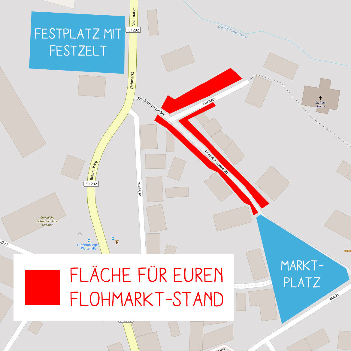 Der Flohmarkt findet am Samstag, den 13. September 2025 statt – und zwar mitten im Herzen des Festgeschehens: zwischen dem Festzelt und dem Marktplatz, rund um die Großmühlinger Pferdetränke. Ein schöner, belebter Ort mit viel Platz für Tische, Kisten und Schatztruhen.